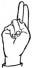 На ћирилици написано БЕРИША МИЛИЋ састоји се из 11 слова [?]. Исписано ћириличном једноручном азбуком за глувонеме: